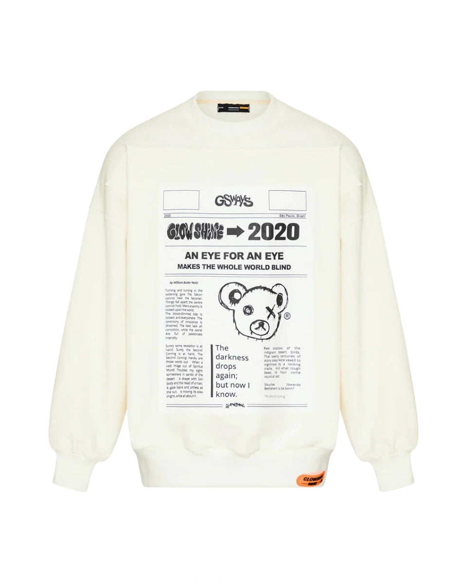 O Moletom GS News é a fusão perfeita entre conforto e statement fashion. A peça traz como destaque a estampa exclusiva estilo jornal, com referências gráficas marcantes e a presença do icônico urso GlowShine, reforçando a identidade irreverente da marca.